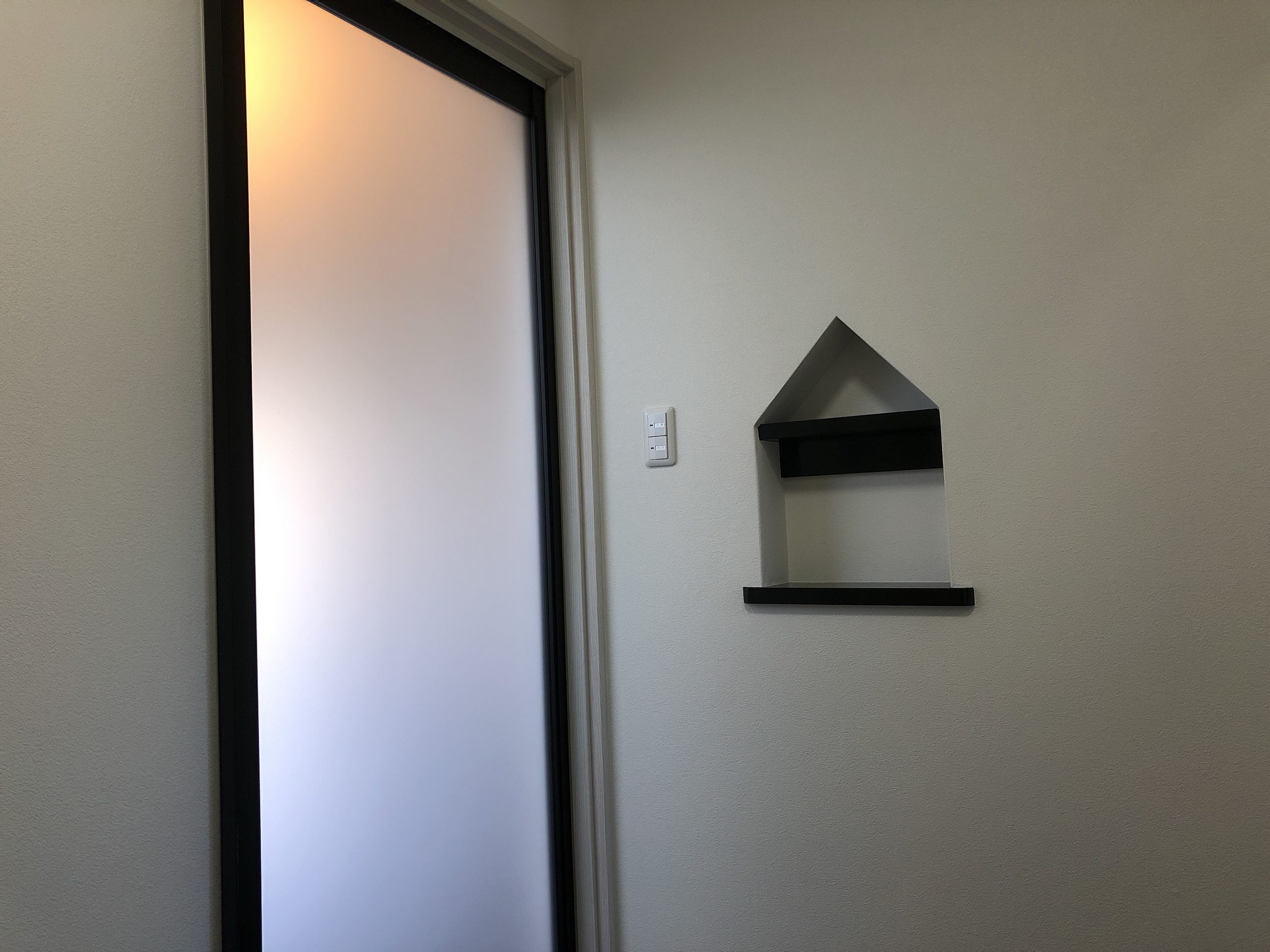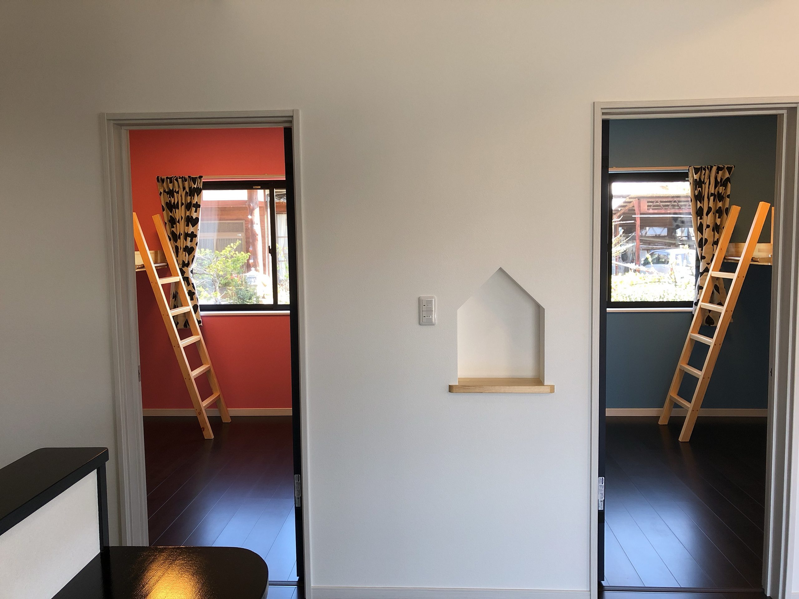 サークル窓廻りのクロスを濃いめのアクセントにされたので