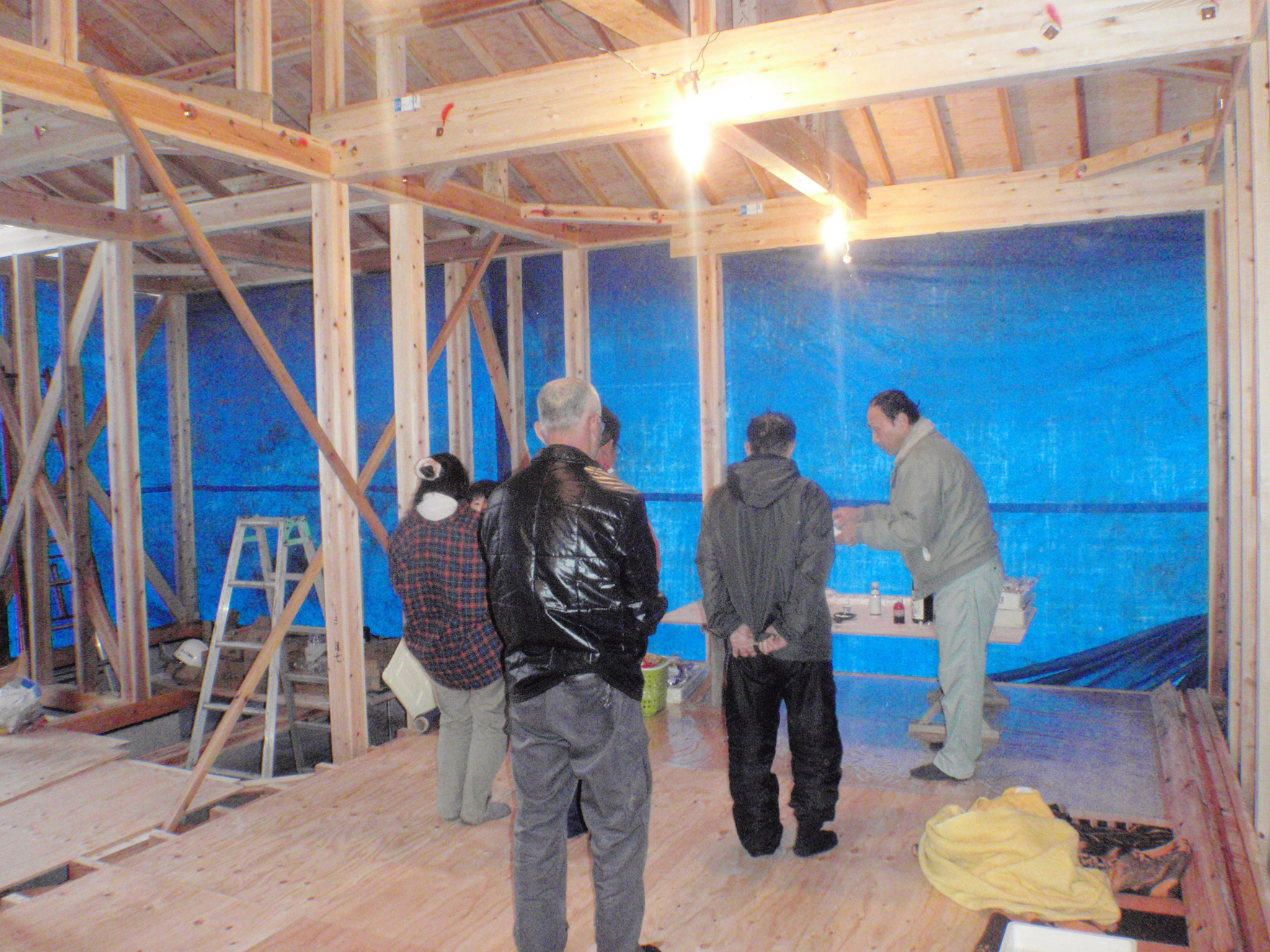 夕方5時ころからは雨が降っていたので家の中で上棟式。