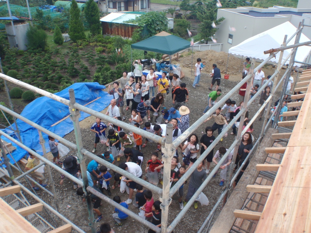地鎮祭、地盤調査、上棟・・・また台風!? ホーム › 未分類 › 地鎮祭、地盤調査、上棟・・・また台風!? 全国の阪田ブログ読者の皆様(!?)、2週間ぶりのご無沙汰です。 m(_ _)m ブログの更新はサボってしまいましたが、仕事をサボっていた訳ではございません。悪しからず・・・ この2週間もいろいろございました。 都農町川北のT様邸棟上げ、上棟式、そしてせんぐまき。 新富町新田のF様邸の地鎮祭、地盤調査、 そしてまた台風・・・でも何処(いずこ)へ・・・