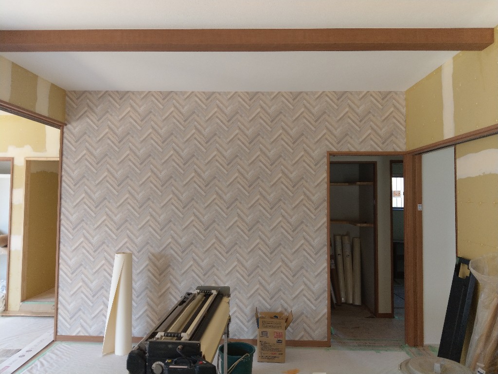 内部はクロス工事中で、