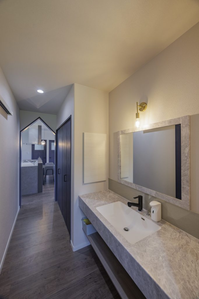 - 要点:造作ミラー・間接光・マット金物で上質に