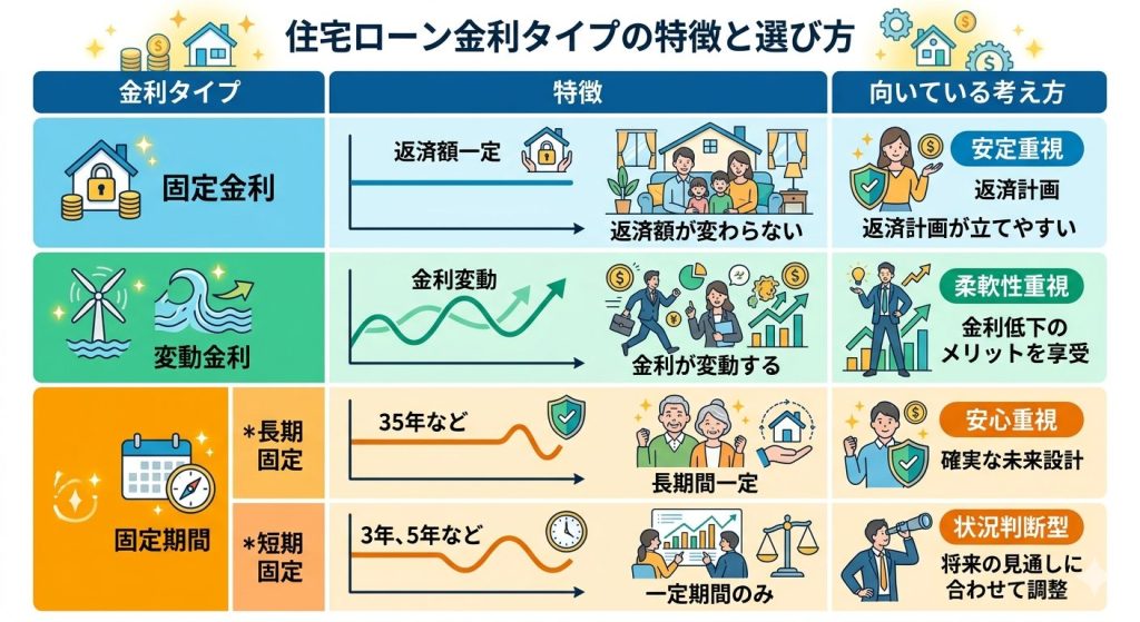 金利タイプはライフスタイルや考え方によって選択が変わります。