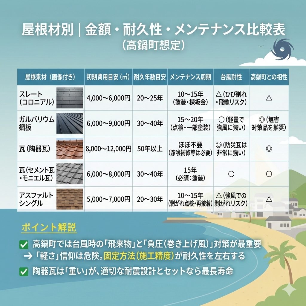 高鍋町では、耐震性と同時に耐風性・経年変化への強さが求められます。