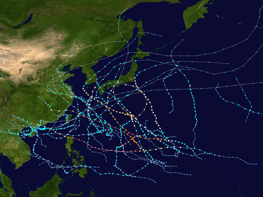 これは、今年の台風の進路図です。